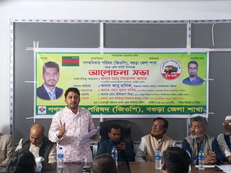 আবু সাঈদ হেলাল,বগুড়াঃ আগামী এক বছরের জন্য মোঃ খোরশেদ আলমকে সভাপতি ও মোজাহিদুর ইসলাম কে সাধারন সম্পাদক করে গনঅধিকার পরিষদ...