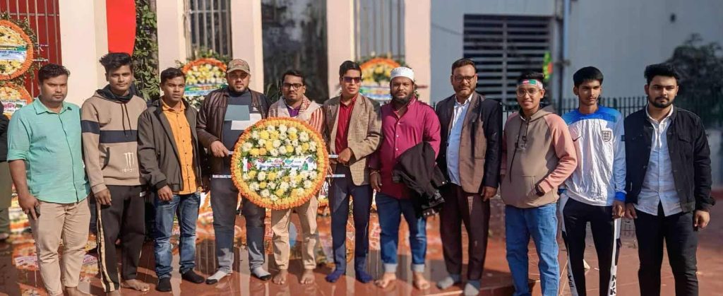 ১৬ ডিসেম্বর মঙ্গলবার সকালে সংগঠনের সাধারণ সম্পাদক চিকিৎসা প্রযুক্তিবিদ মোঃ আরমান হোসেন ডলারের নেতৃত্বে জেলা কমিটির নেতৃবৃন্দ কেন্দ্রীয় শহীদ মিনারে পুষ্পস্তবক অর্পণের মাধ্যমে শহীদদের স্মৃতির প্রতি সম্মান জানান।
