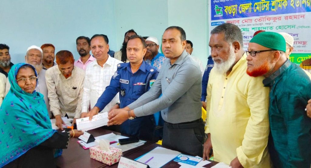 বগুড়ায় মৃত,পঙ্গু ও শ্রমিক সদস্যর মেয়ের বিবাহের জন্য অনুদানের চেক বিতরণ