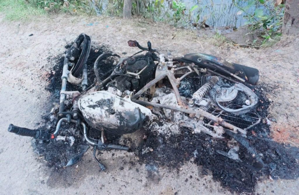 বগুড়া শেরপুরে পথরোধ করে চাচা-ভাতিজার উপর হামলা: মোটরসাইকেলে আগুন