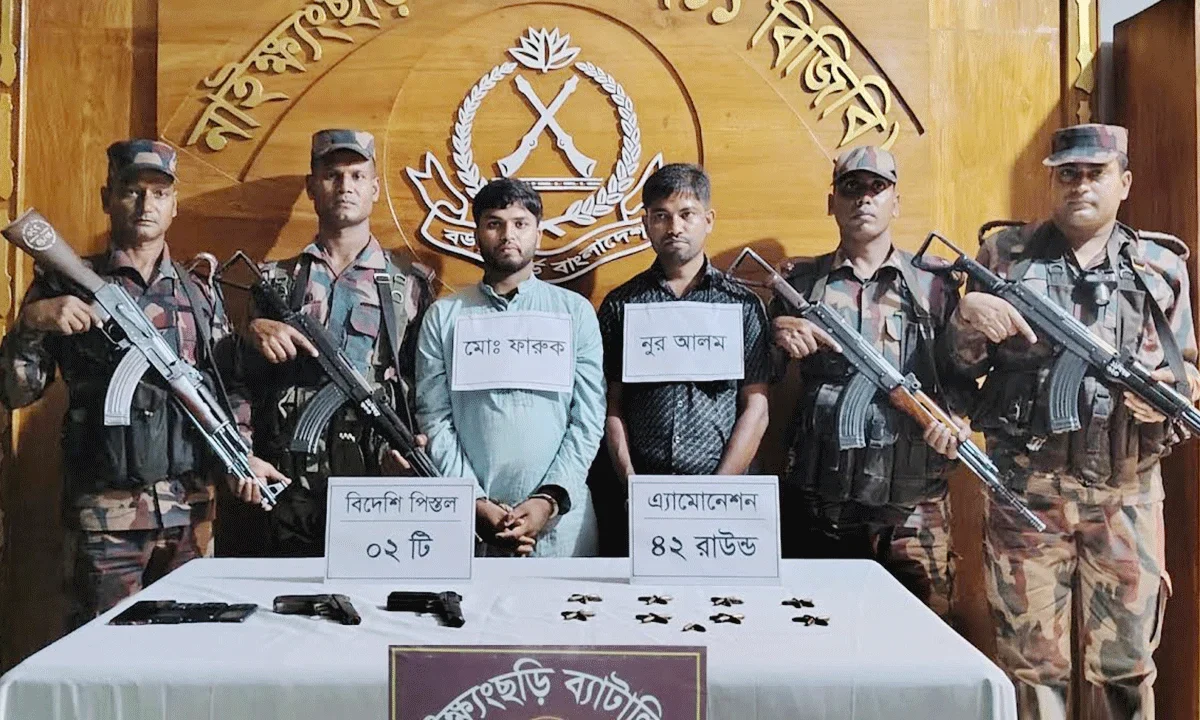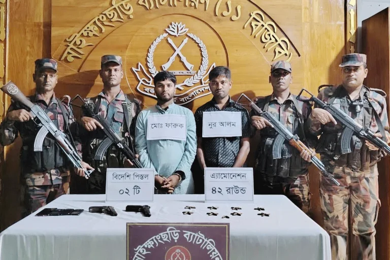 Online Desk: বান্দরবানের নাইক্ষ্যংছড়ি উপজেলার সদর ইউনিয়নের বাগানঘোনা এলাকায় একটি বিশেষ অভিযান চালিয়ে দুটি পিস্তল ও ৪২ রাউন্ড গুলি উদ্ধার...